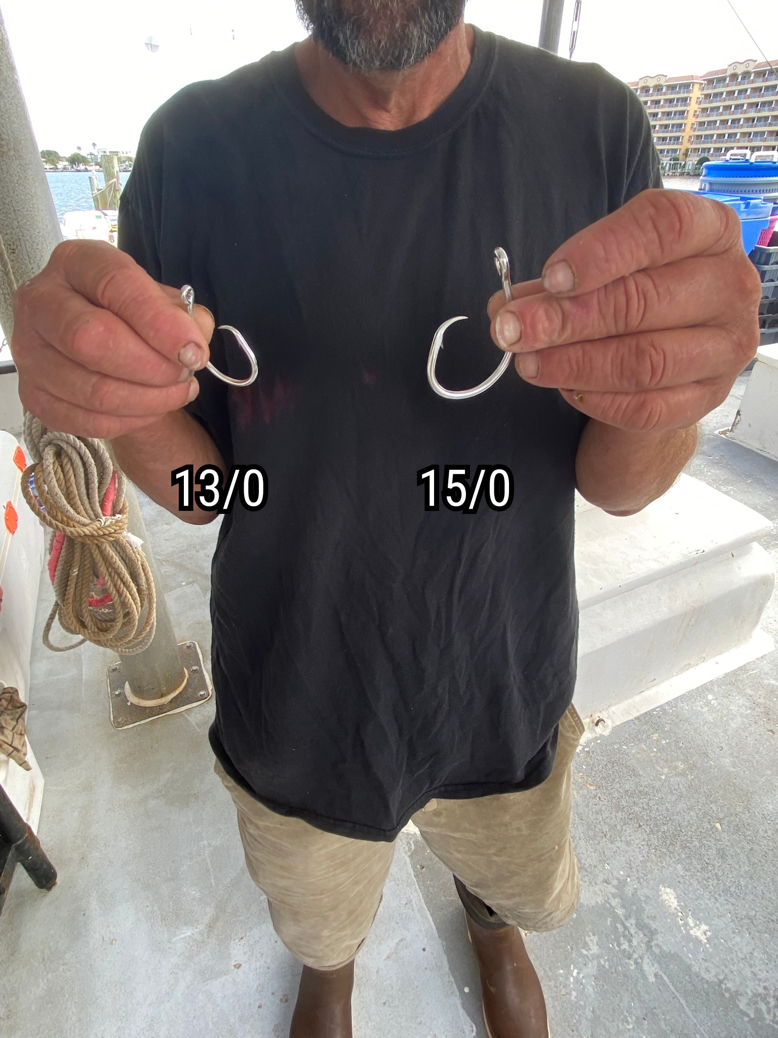 Addressed an industry gear specific question by evaluating the impacts of different hook sizes on fish selectivity, on reducing bycatch and subsequent discards of non-target species.Vessel’s EM video footage provided detailed documentation, enabling scientific evaluation of the species that were caught by the different hook sizes. These detailed analysises shed light on the effectiveness of different gear configurations in mitigating bycatch. (Below Right: painted leader clips to indicate hook size for video review; Left: two evaluated hook sizes,13/0 and 15/0)