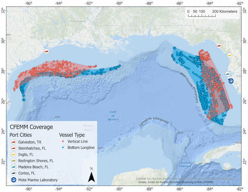 To complement this important program and fill monitoring gaps—a need emphasized by federal fisheries managers and the commercial industry—the independent, nonprofit Mote Marine Laboratory operates the Center for Fisheries Electronic Monitoring at Mote (CFEMM).