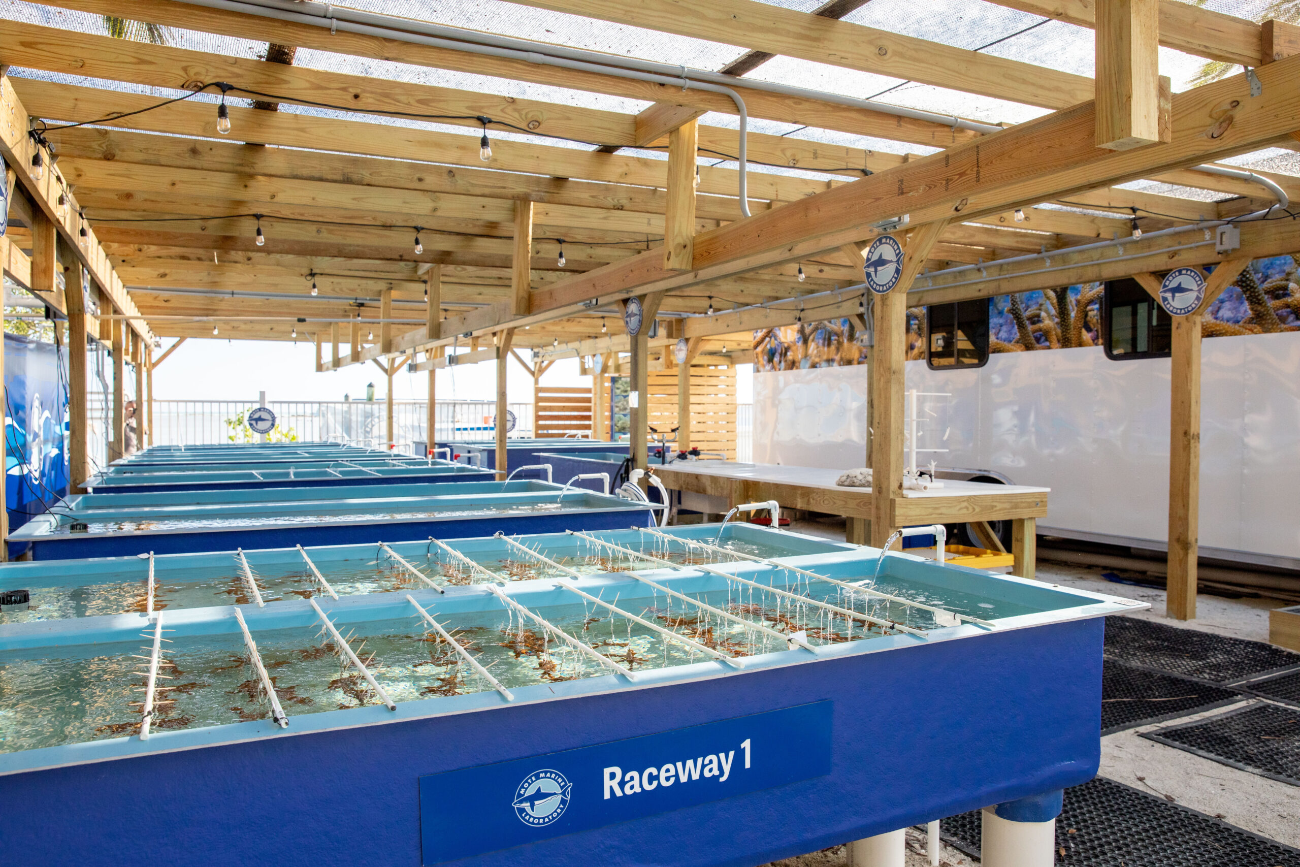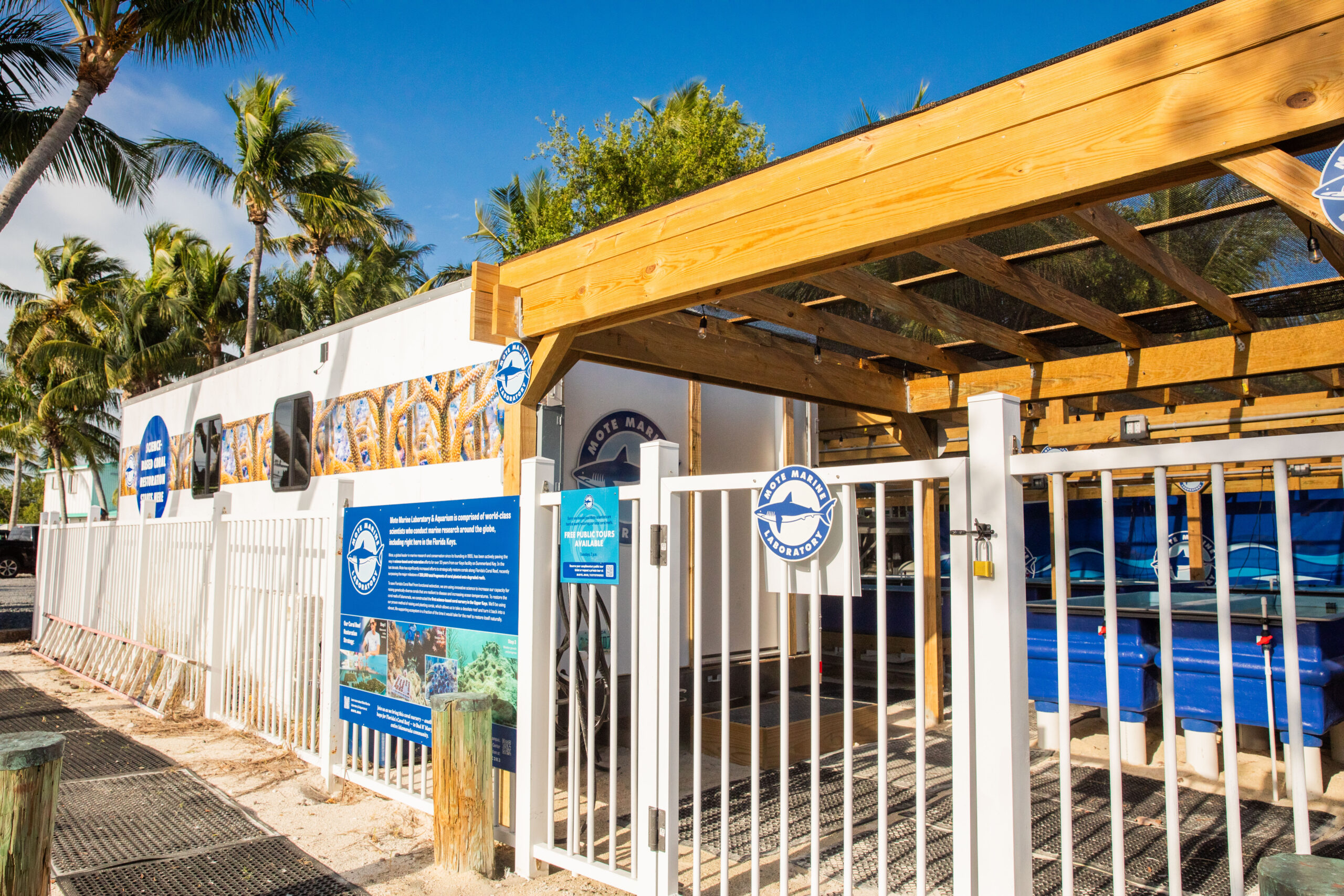 To expand our positive impacts on coral reefs in the Upper Florida Keys, Mote Marine Laboratory created the first and only coral nursery in Islamorada. The Islamorada Coral Nursery, situated on the property of the famed Bud n’ Mary’s Marina on Upper Matecumbe Key, is a satellite campus of Mote’s primary Florida Keys location: the Elizabeth Moore International Center for Coral Reef Research & Restoration on Summerland Key.