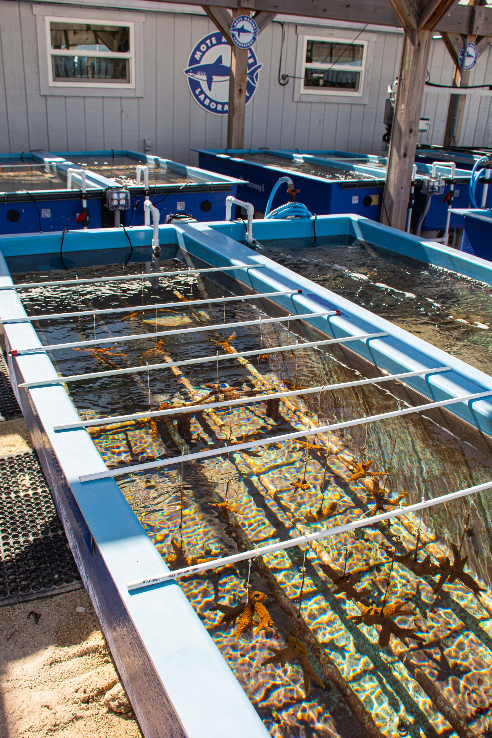 To expand our positive impacts on coral reefs in the Upper Florida Keys, Mote Marine Laboratory created the first and only land-based coral nursery in Key Largo. The Key Largo Coral Nursery, situated on the property of the Reefhouse Resort & Marina is a satellite campus of Mote’s primary Florida Keys location: the Elizabeth Moore International Center for Coral Reef Research & Restoration on Summerland Key.