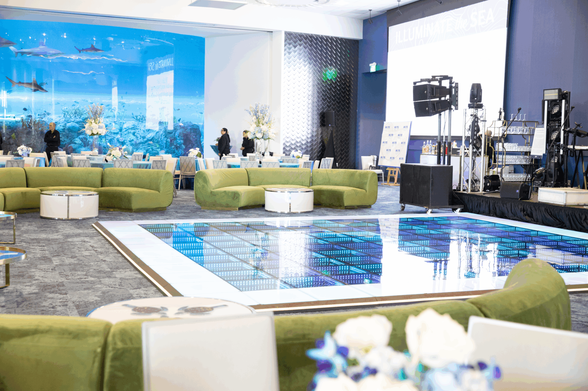 Experience the awe-inspiring beauty of Mote SEA’s Aquarium Venue Exploration Hall, a breathtaking 10,000-square-foot space designed to captivate and inspire. Home to a spectacular 400,000-gallon exhibit, this hall showcases the vibrant marine life of Florida’s Gulf waters, featuring everything from graceful stingrays to majestic sharks and colorful tropical fish. Exploration Hall includes the Gulf Room, Bay Room and the Coastal Foyer.