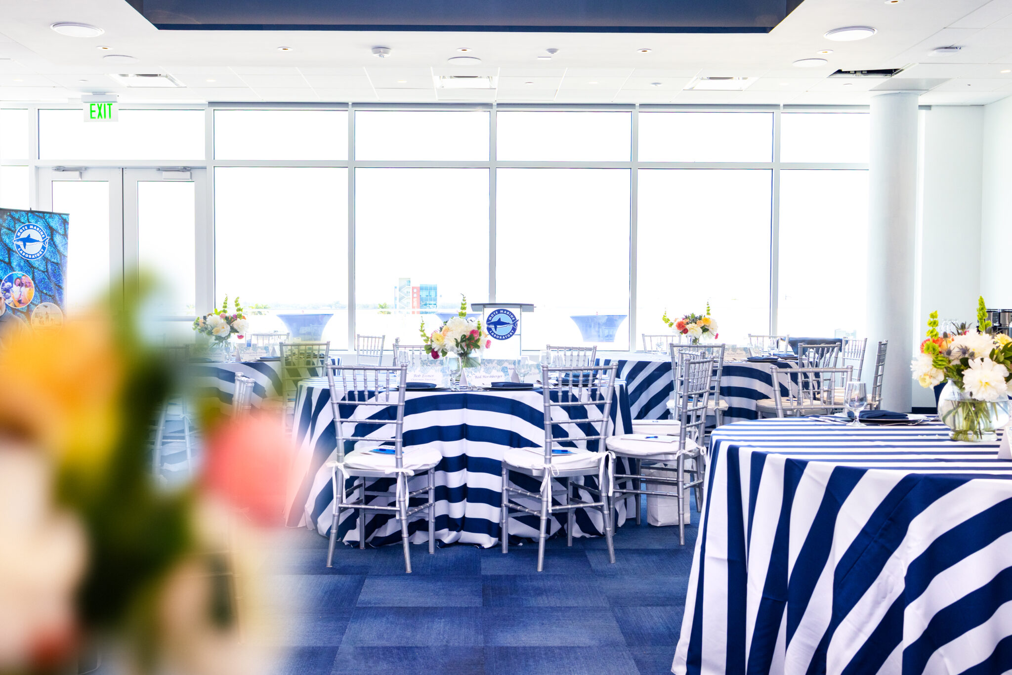 Perched on the third floor of Mote SEA, the Quarterdeck Room offers 1,200 square feet of sophisticated event space with breathtaking views of Sarasota’s skyline and the serene Nathan Benderson Park. With its elegant design and versatile layout, this room provides the perfect setting for a breakfast or lunch meeting, or an evening dinner with cocktails on the adjoining terrace.