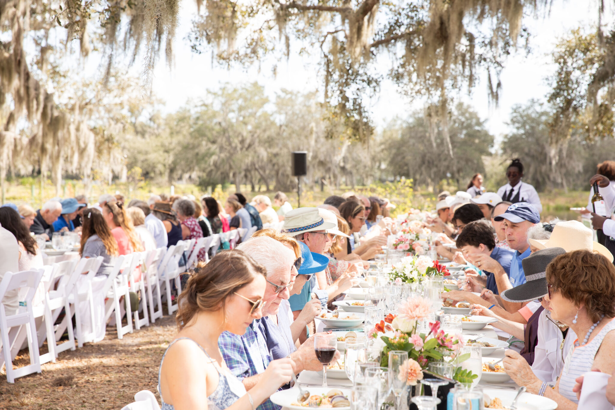 Guests gather under shady oaks for a delicious and inspiring experience at Mote Aquaculture Research Park. Guests will enjoy a delicious lunch and exclusive, behind-the-scenes tours of Mote’s rapidly growing research park. Hear directly from Mote scientists about their work to advance sustainable aquaculture technology to feed the world, to restock depleted fish populations, to mitigate red tide, and to restore Florida’s coral reef.