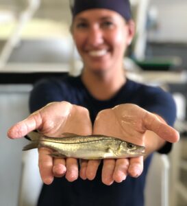 We release hatchery-reared juvenile snook following a unique method that allows us to conduct timely assessments of their post-release survival, and in turn, develop statistical models of the potential influences on their survival. Each released snook is tagged with a passive integrated transponder (PIT tag) that is detected by antenna arrays on shore. These antenna arrays allow for fine-scale, timely detection of fish presence and movements after release.- By treating released snook as ecological probes, we work to identify ecosystem features that are important to protect or restore based on their ability to support healthy fish and fisheries. In particular, we focus on tidal creek systems in Sarasota County, Florida—some of these creeks have the capacity to support functional fish communities while others are losing this capacity because of human-driven modification. By releasing ecological probes into altered systems, we aim to identify areas that may benefit from naturalization.